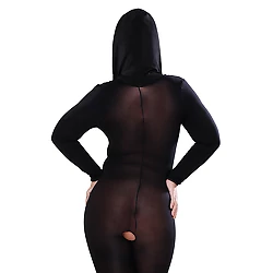Черный чулок из эластичного материала с открытой промежностью и капюшоном. Размер: Diva size (XL-XXL). Цвет: черный. Материал: 95 % нейлон 5 % спандекс.