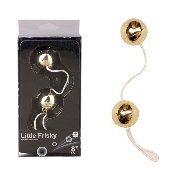 Золотистые вагинальные шарики LITTLE FRISKY LOVE BALLS GOLD. Мягкая сцепка, лёгкая очистка.