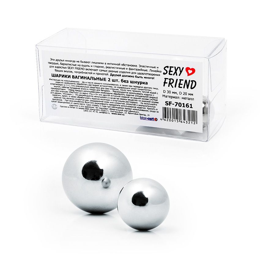 SF-70161 ШАРИКИ ВАГИНАЛЬНЫЕ 2 шт. без шнурка, металл D 30 мм (110 гр.), D 20 мм (35 гр.)