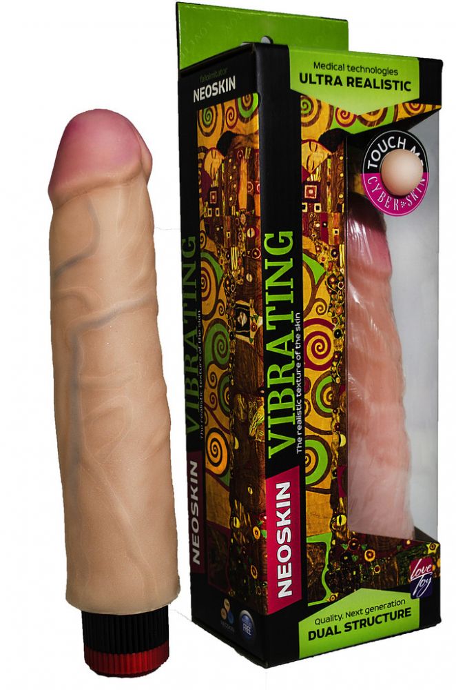 Вибромассажёр телесного цвета. Имеет форму члена с ярко-выраженной головкой. Необычайно приятный, рельефный, выполненный из материала «Неоскин» , передающий эффект мягкой реалистичной текстуры кожи, не имеет швов. Виброэлемент расположен по всей длине изделия. Степень вибрации регулируется при помощи кнопки, расположенной в основании. Работает от 2АА батареек (нет в комплекте). Общая длина – 23,5 см, рабочая длина- 20 см, максимальный диаметр - 4,7 см. Упаковка: картонная коробка с принтом.