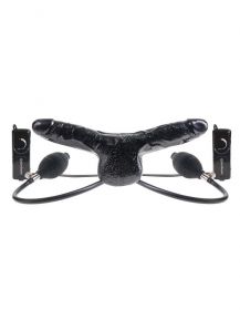 Черный вибромассажер с расширением – универсальная секс-игрушка удовлетворит любые запросы пользователя. Хотите получить в свое распоряжение аксессуар для интимных развлечений без ограничений полета эротических фантазий? Фаллоимитаторы черного цвета сдвоенные в области мошонки, реалистичной формы. Здесь четко прочерченная головка и волнообразный рельеф тела. С помощью вибромоторчика игрушка «оживает» и становится идеальным стимулятором. Нужно лишь выбрать желаемые ритм и интенсивность воздействия. Захотите большего – воспользуйтесь насосом-грушей, и внутри тела фаллоимитаторы принимают желаемый объем. Гарантированы впечатления по максимуму, самые смелые эксперименты. Изделие выполнено из материалов, идеально соответствующих функциональности. С помощью насоса пробка легко увеличиваются в объеме, а через надежный клапан легко спускает воздух, чтобы принять первоначальные габариты.Inflatable Vibrating Double Delight Двухголовый вибромассажер с расширением Pipedream, c вибрацией, длина 35.50см, диаметр 4.80см