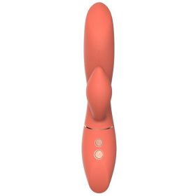 21771 Вибратор с клиторальным стимулятором, перезарежаемый, оранжевый, 2 мотора 10 режимов, силикон