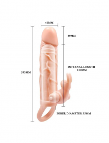 Телесная вибронасадка с клиторальным стимулятором Brave Man - 20,5 см.Вибронасадка с клиторальным стимулятором Brave Man Baile Pretty Love. Имеет отросток в виде зайчика для дополнительной стимуляции клитора. Длина полости - 12 см., диаметр - 3,5 см.