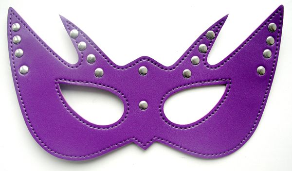 Отличный аксессуар для всех любителей фетиш-культуры и BDSM. Декоративная маска на глаза, с вырезами и "рожками", украшена металлическими клёпками. Выполнена из винилового материала , размер универсальный ведь маска крепится при помощи резинки.Доступна в фиолетовом цвете.