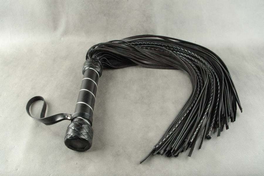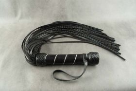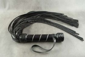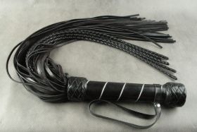 Плеть из 75 полос средней жесткости кожи с прямым резом на концах и 5-ти плетенных кожаных шнурков длиной 540 мм. Рукоять с двумя ограничительными бобышками "колесом" плетеная "ромбом" сдовоенной полосой, обвитая полосной кожей со струной в областях стыка.Материал: натуральная кожа