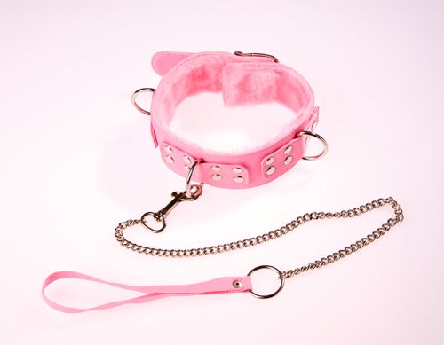 Изготовлен из искусственной кожи. С внутренней стороны подклада из мягкого меха. При изготовлении использована фурнитура с никелевым покрытием. Металлическая цепочка (поводок), с карабином на конце, поможет вам с лёгкостью управлять своим партнёром. Размер универсальный.