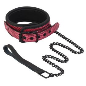 Комплект Collar & Leash с мягким удобным воротником, имитирующим кожу змеи. Воротник легко регулируется по размеру благодаря застежке-пряжке. Металлический поводок с прикрепленной петлей для запястья легко подсоединяется или отсоединяется с помощью мушкетонной клипсы.