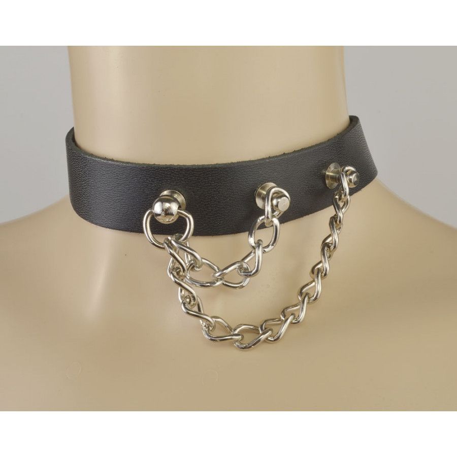 Чокер изготовлен из натуральной кожи черного цвета. Регулируется при помощи кнопок.