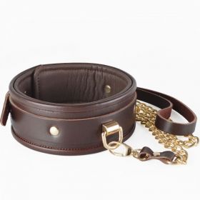 Ошейник SitaBrown из натуральной кожи в классическом стиле. Внутренняя сторона изделия выполнена из мягкой искусственной кожи. Ошейник шириной 55 мм имеет декоративный элемент в виде накладки из кожи с клепками золотого цвета и полукольцом, которое используется для присоединения поводка - цепочки к ошейнику. Общая длина поводка около 90 см. Размер изделия регулируется металлической пряжкой.Цвет коричневый.