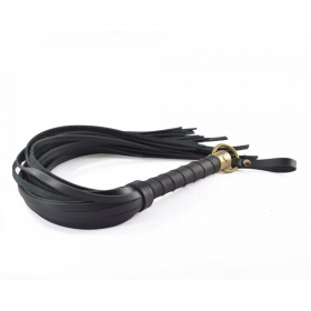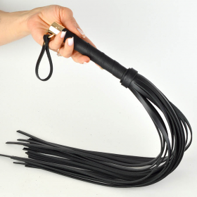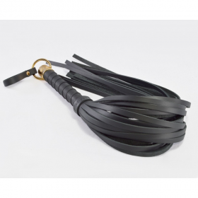 Роскошная плеть не только поможет произвести качественную флогеляцию, но и возбудит воображение, вызывая череду эротических фантазий, что порождает желание поскорее окунуться в чувственный и волнующий сексуальный процесс. Изготовлена плеть из высококачественной натуральной кожи. Плеть состоит из жёсткой рукояти (длина 15 см) и хвостовой части из 24 плоских лент, длиной около 40-45 см. Торец рукояти украшен металлическим "стаканчиком" с кольцом. Общая длина изделия составляет 60 см. Масса 190 гр.