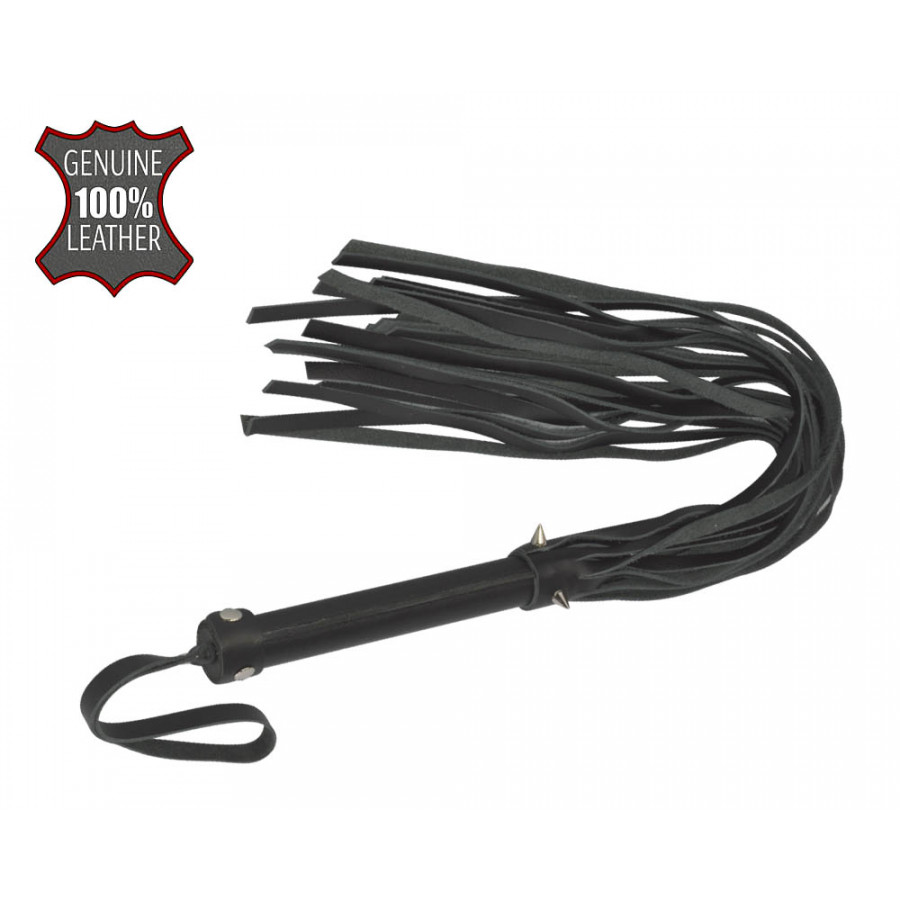 Плеть изготовлена из натуральной кожи и украшена тремя металлическими шипами.