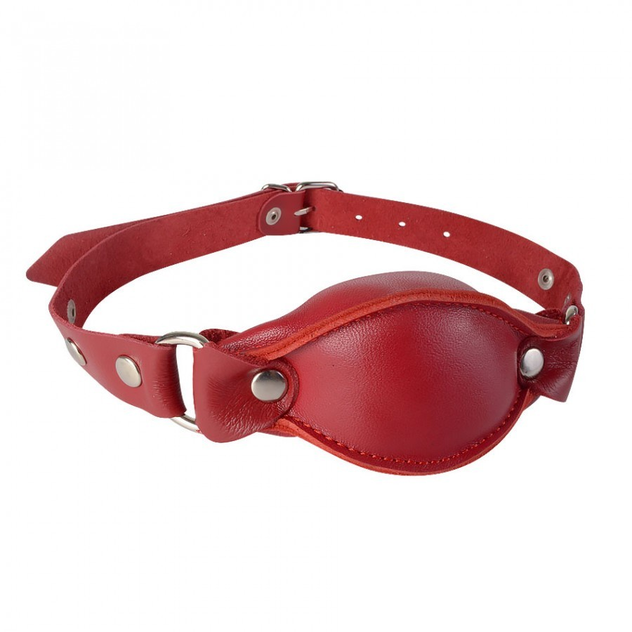 Классический кляп выполнен из натуральной кожи красного цвета и заполнен таким образом, чтобы быть достаточно упругим и плотным, но при этом даёт возможность немного сжиматься зубам, не нанося им вред. Кляп хорошо заполняет область рта, что препятствует проникновению каких-либо звуков. Аксессуар можно подогнать по размеру при помощи регулируемых ремешков и никелированной пряжки.