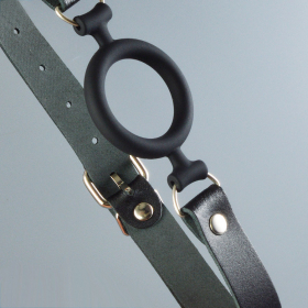 Силиконовый кляп-рамка с ремешками из натуральной кожи. Регулируется кляп при помощи металлической пряжки. Металлическая фурнитура имеет никелевое покрытие. Общая длина 59 см. Внешний диаметр 51 мм, внутренний 36 мм. Ширина ремешков 20 мм..