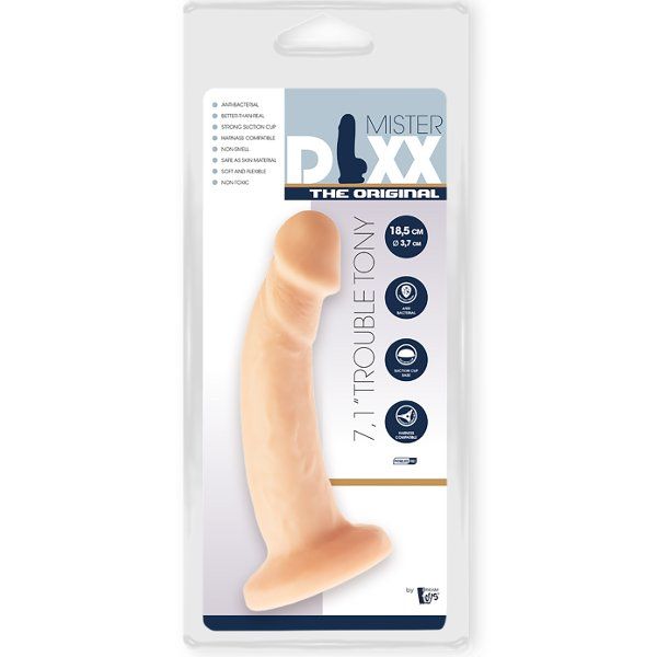 Вашему вниманию предлагается "Фаллоимитатор-массажер Mister Dixx 18.5" реалистичной формы, который похож на настоящий мужской половой орган. Он повторяет естественные формы мужского полового члена, на нем вырисовываются вены и складочки настоящего мужского достоинства. Вас не покинет ощущение реального времени наедине с фаллоимитатором реалистичной формы, который имеет приятную на ощупь текстуру и элегантную форму.Общая длина - 18,5 см, диаметр - 3,7 см.
