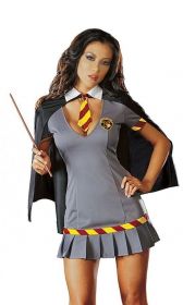 Костюм волшебницы Ванды включает в себя серое платье с плиссированным подолом, плащ с воротником и коротким галстуком, волшебная палочка, очки. Этот костюм подойдёт для Нового года, Хэллоуина и других вечеринок.Рекомендации по уходу: