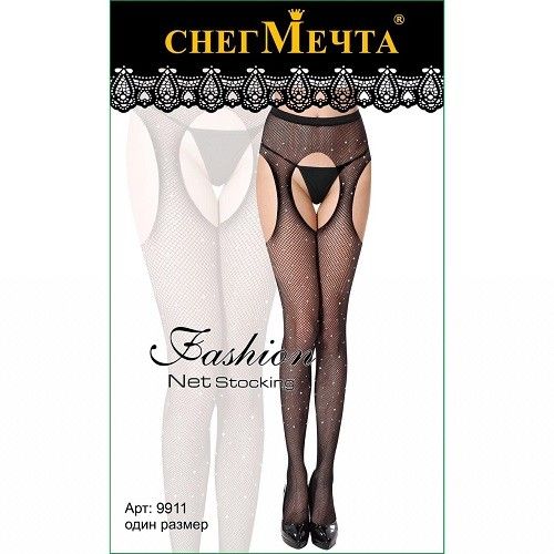 9911 Колготки искрящиеся стразами в сетку черные