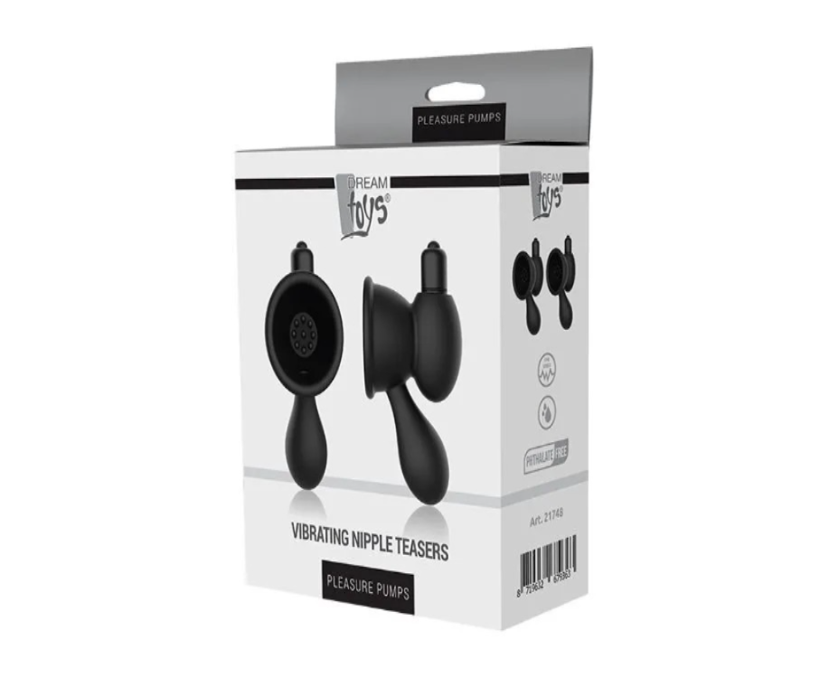 Черные вибронакладки для сосков VIBRATING NIPPLE TEASERS. С помощью груши фиксируются на сосках. Включение виброэлементов способно раздразнить вас до предела!производителя