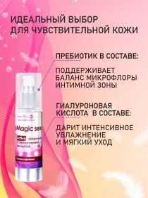 "MAGIC SEX" - это чувственность, нежность, сладкая нега... Природная формула лубриканта дарит абсолютно естественные ощущения.Гель создан с учетом особенностей организма прекрасной половины человечества. Средство максимально близко копирует женскую смазку и обеспечивает продолжительное скольжение. Идеальный выбор для чувствительной кожи. Благодаря 100% натуральному составу на водной основе и специальному пребиотику лубрикант поддерживает баланс микрофлоры интимной зоны. Гиалуроновая кислота способствует регенерации, дарит интенсивное увлажнение и мягкий уход. "MAGIC SEX" - сказочное удовольствие и незабываемый восторг взаимного экстаза!