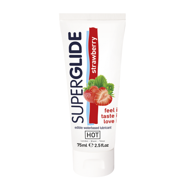 Съедобная смазка HOT Superglide на водной основе со вкусом клубники, для орального секса,