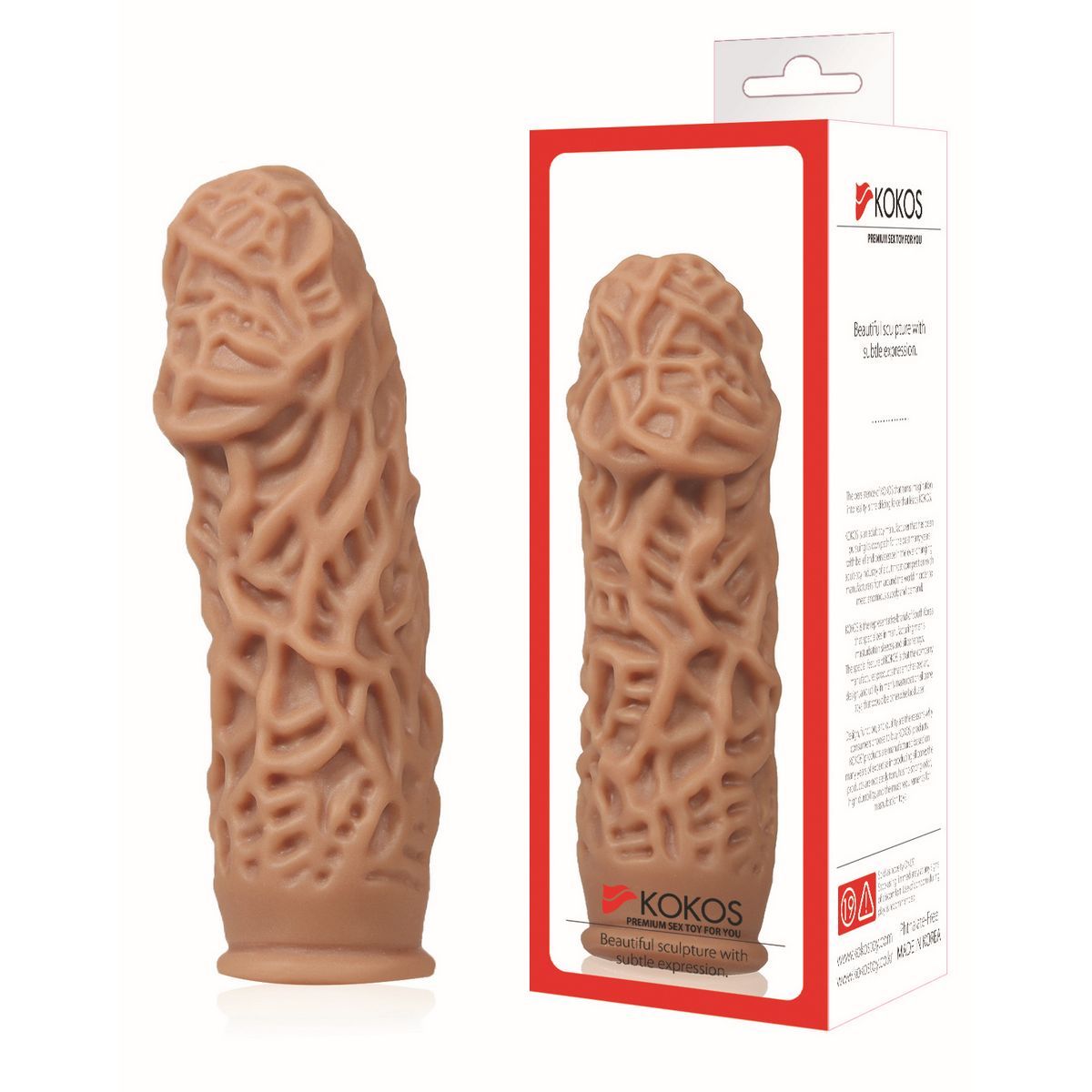 Насадка на фаллос с рельефными складочками размер M, Extreme Sleeve ES.012 KOKOS, длина 14.70 см, диаметр 4.30 см