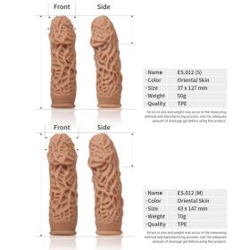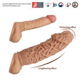 Насадка очень эластичная, имеет имитацию складочек по всей поверхности,и даже на головке, для стимуляции эрогенных зон партнера, увеличивает толщину головки и ствола пениса.