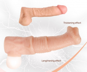 Насадка полностью выполнена из нежного материала, поэтому та часть насадки, которая будет удлинять — достаточно мягкая, чтобы не нанести дискомфортных ощущений партнерше.