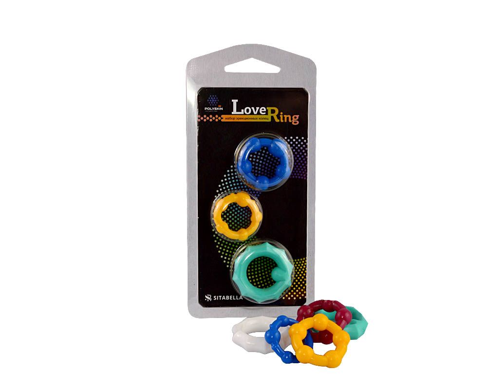 Набор эластичных эрекционных колец для продления сексуального удовольствия. Кольца имеют различный размер, цвет и оригинальную форму. Эластичный немецкий материал хорошо растягиваются, но при этом обеспечивают достаточное давление. Размер упаковки 17 см/8 см/2 см. Масса брутто 25 гр.