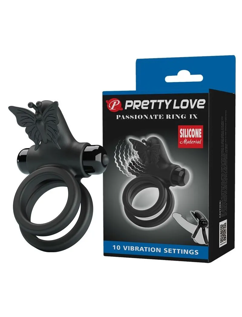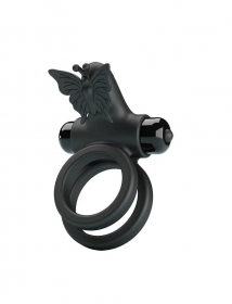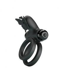 Эрекционное виброкольцо с дополнительным стимулятором клитора в форме бабочки и дополнительным кольцом под мошонку. Имеет 10 режимов вибрации.Диаметр колец - 3,2 и 3,8 см.