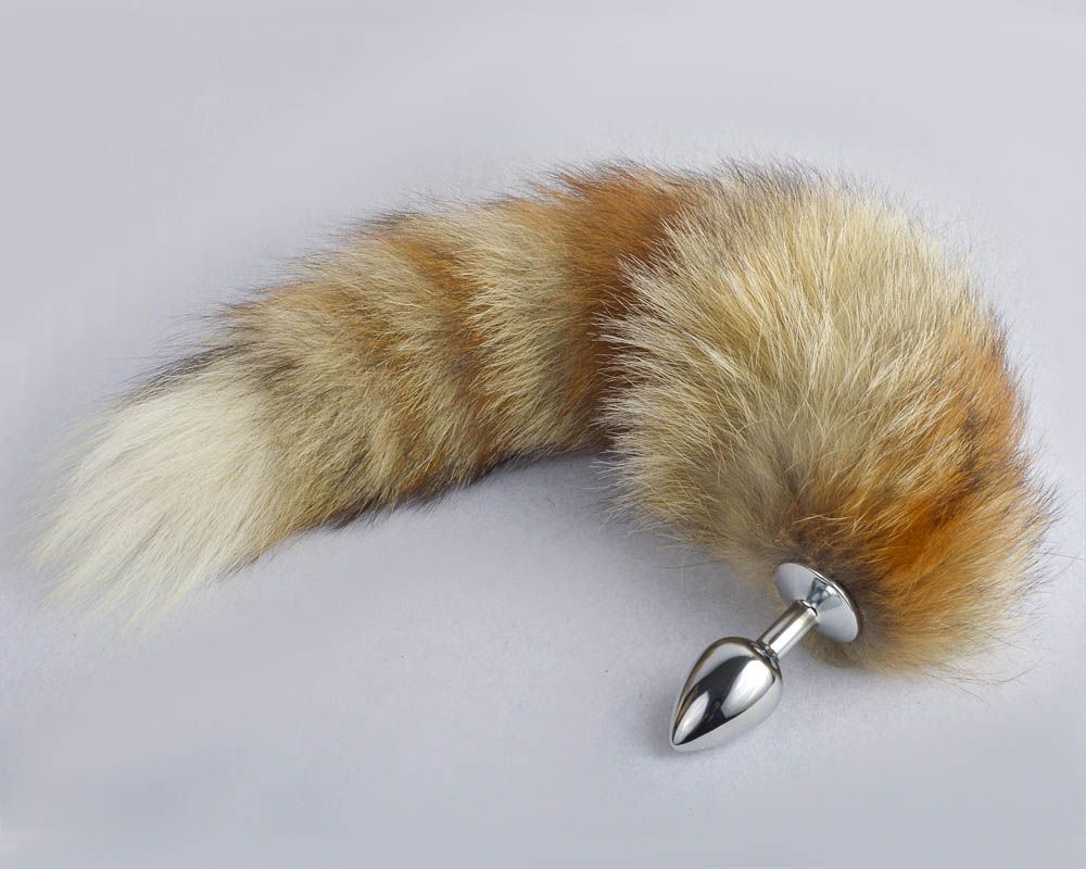 Анальная хромированный плуг с натуральным лисьим хвостом. Длина рабочей части пробки 4 см, максимальный диаметр достигает 2,8 см. Длина хвоста 30-35 см.