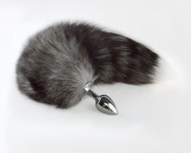 Анальная пробка с натуральным хвостом35 -40 см, цвет серый