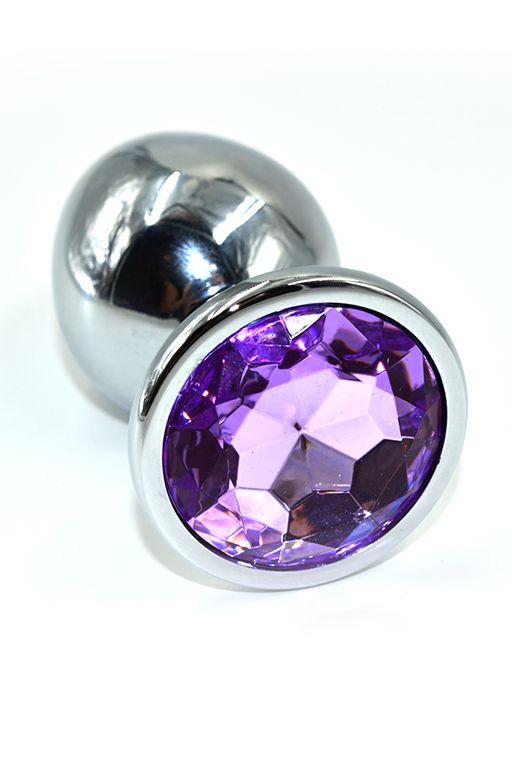 AP-AL001-LLYV Серебряная анальная пробка с фиолетовым кристаллом (Large)