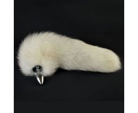 Анальная металлическая пробка с натуральным белым хвостиком. Длина хвоста - 30-35 см. Диаметр анальной пробки 2,8 см