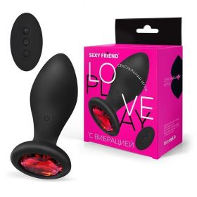 SF-70504-16 ВТУЛКА С ВИБРАЦИЕЙ чёрный, цвет кристалла красный, 10 режимов вибрации, L 90 мм D 35 мм,