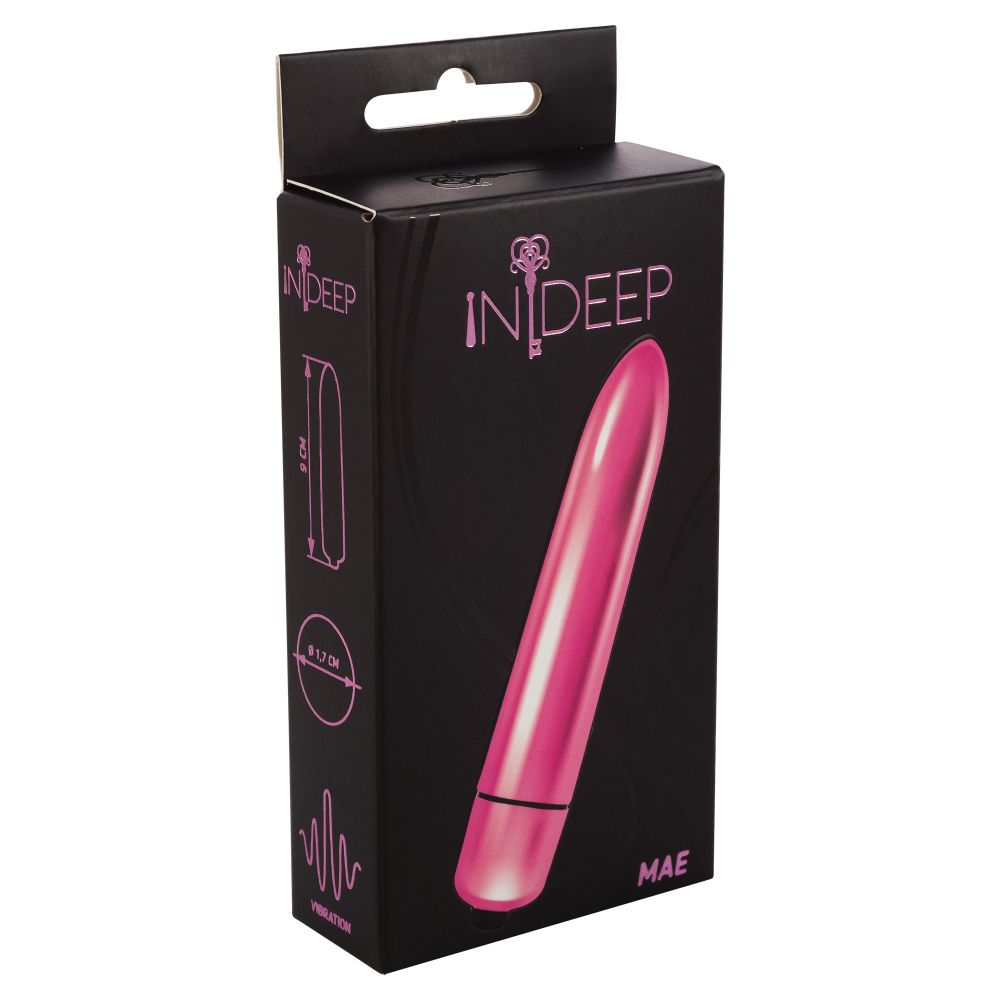 Вибропуля Mae прекрасно подходит для стимуляции эрогенных зон. Благодаря своему маленькому размеру, она удобна для транспортировки, и её всегда можно держать под рукой. Пуля имеет 1 режим вибрации. Подходит как для соло-стимуляции, так и для разнообразия интимной жизни вместе с партнером во время прелюдии. Характеристики: общая длина- 9 см, диаметр- 1,7 см, работает от 1ААА батарейки (нет в комплекте). Упаковка: картонная коробка с принтом.Производитель: Indeep