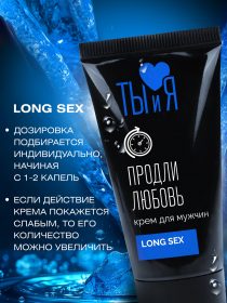 LONGSEX - мужской стоп-крем быстрого действия предназначен для продления полового акта. Отлично впитывается и начинает работать уже через 5 минут после нанесения.Крем ухаживает за кожей полового члена, оказывает смягчающие и успокаивающие действие. Идеально подходит для мужчин с повышенной чувствительностью. LONGSEX позволяет контролировать время полового акта. Не влияет на яркость ощущений, эрекцию и потенцию. Без запаха. После использования не требует специального удаления. Совместим с презервативами, изделиями из латекса и синтетических материалов.