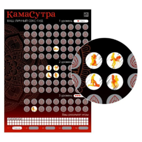 Пройти игру - значит выполнить все позы. Итак, обо всём по порядку: для начала поместите плакат на ровную поверхность и возьмите монету, чтобы стереть скретч-слой. В комплекте: плакат формата А3 со скретч-слоем,правила игры.