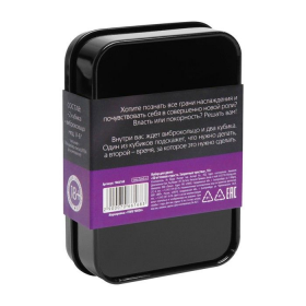 Узнайте все секреты наслажденияПредставляем вам серию премиальных эротических игр в жестяных коробочках. Хотите окунуться в буйство страсти и доставить друг другу незабываемое удовольствие? Тогда этот набор — то, что вам нужно. Внутри вас ждут пикантные атрибуты для секс-игр: виброкольцо и неоновые кубики.Как пользоваться кубиками? Очень просто! Всего в комплекте их два: один подскажет, как заняться сексом (,при свете, с завязанными глазами и т. д.),, а второй — сколько времени нужно это делать. Бросайте кубики, получайте задание и наслаждайтесь друг другом! В комплекте также есть виброкольцо, которое можно использовать во время игр.Внутри вы найдёте:2 неоновых кубика,виброкольцо.