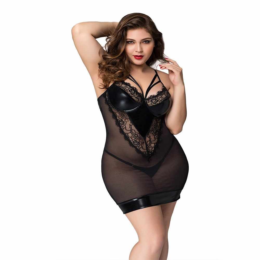 Эротическое черное платье большого размера поможет раззадорить фантазию мужчины во время любовных утех. Прозрачная ткань с ажурными кружевами и вставками из спандекса раскроет красоту и привлекательность обладательницы пышной фигуры. В комплекте с платьем получаете миниатюрные трусики, благодаря которым словите восхищенные взгляды своего партнера. Сердце мужчины забьется быстрее, когда появитесь в образе роковой искусительницы в сногсшибательном обтягивающем платье.Мягкий, но прочный и эластичный материал замечательно держит форму, подчеркивая приятные округлости бедер и груди. Запланировав романтический вечер, удивите любимого тщательно продуманным образом. Дерзкое мини разбудит вашу чувственность и подскажет интересные сюжеты для страстных и жарких интимных игр. Подобрав удачные аксессуары, можно поэкспериментировать с образом и остановиться на варианте, который доставит наибольшее удовольствие обоим