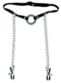 PD3845-23 Кольцо-расширитель для рта с цепочками, соединяющими его с клипсами для сосков