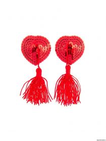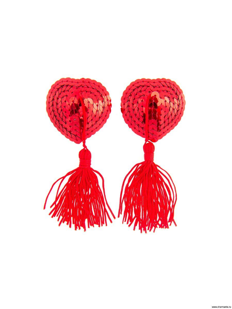 Стикини в форме сердца с кисточками. Украшены мелкими пайетками.