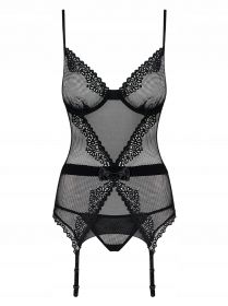 Невероятно женственный корсет с кружевными украшениями. Чашки на косточках, регулируемые бретели. Стринги в комплекте.