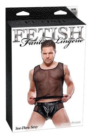 Костюм стриптизера включает в себя: прозрачные, сетчатые трусы с вставкой из нейлона и прозрачную сетчатую майку. Размер: SM. Цвет: черный. Производитель: PipeDream, США.
