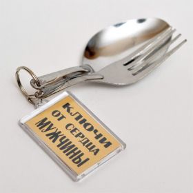 В сердце мужчины есть святилище, куда можно войти лишь с брелком "Ключи от сердца мужчины". Замечательный, лёгкий и компактный брелочек из серебристого металла. На удобном колечке размещены столовые приборы: миниатюрные ложка и вилка. Они не только помогут остаться сытым в экстремальных условиях, но и напомнят о пути домой. Такой брелок станет сувениром и для женщин, и для мужчин. Для первых - это признание в любви, для вторых - знак "занят". Брелок "Ключи от сердца мужчины" - где там у вас деньги лежат?