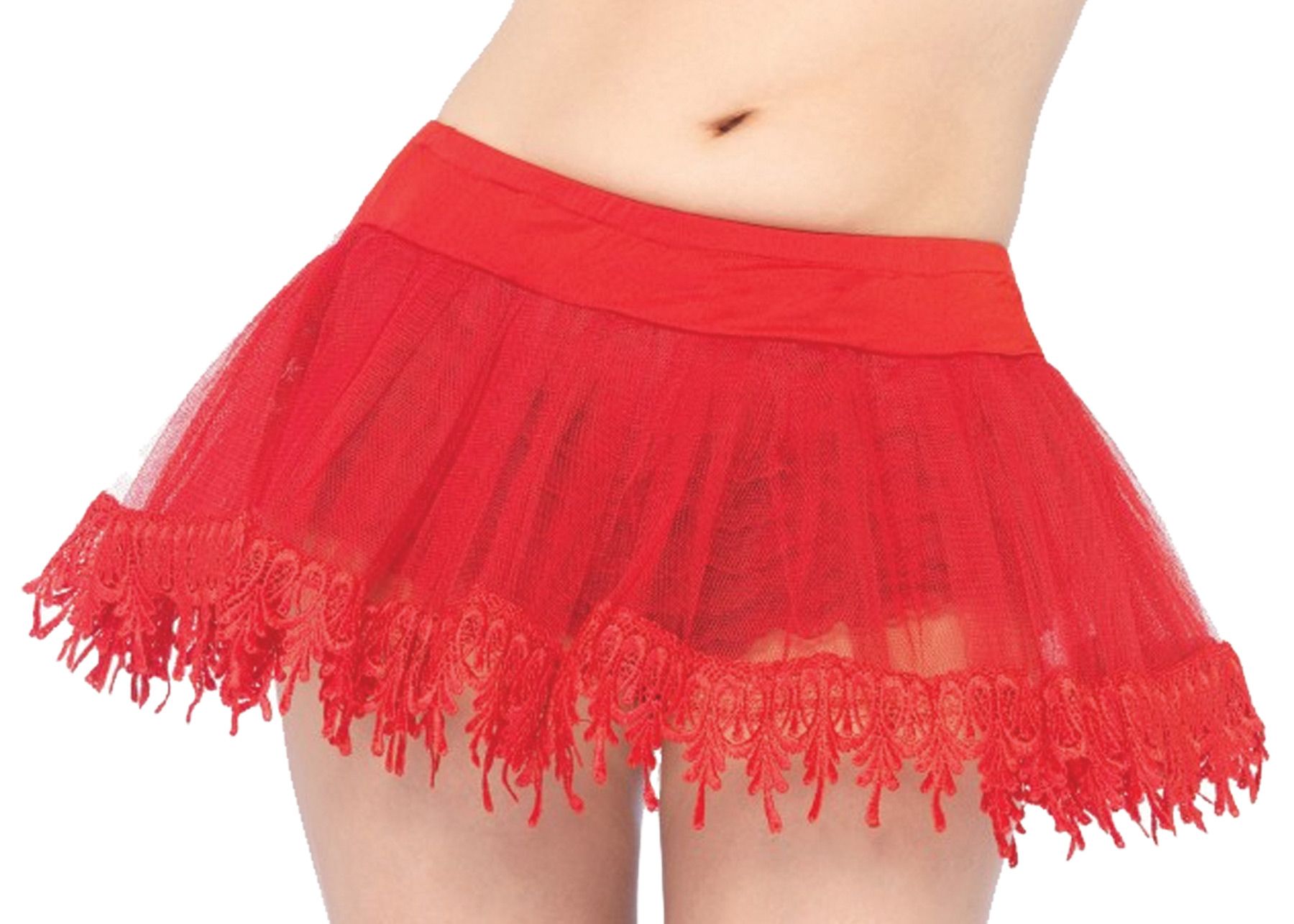 Красная 16-дюймовая юбка, отделана кружевом, имеет эластичную талию. Нейлон. Один размер