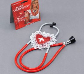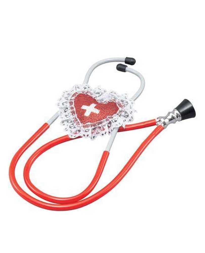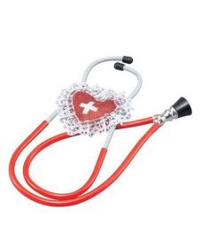 Все провода в стетоскопе красного цвета, а наушники украшены красным сердцем с белыми кружевами и белым крестом посередине. Стетоскоп - отличный аксессуар к костюму медсестры.