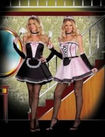 7590 костюм Dreamgirl, в два раза грязнее полностью реверсивного эластичного вязаного корсета в стиле розово-черного платья со шнуровкой спереди, реверсивной задней молнией, принцессой шва косточки и встроенной нижней юбкой. Включает в себя головную часть, колье, длинные перчатки-Перчатки, съемные/регулируемые плечевые ремни, фартук и метелку из перьев. (набор из 8 частей). Эта французская горничная такая веселая