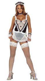 Костюм горничной из кружевного боди с пришитым передничком, наколки, повязки на шею и открытых полуперчаток.(чулки заказывайте отдельно)